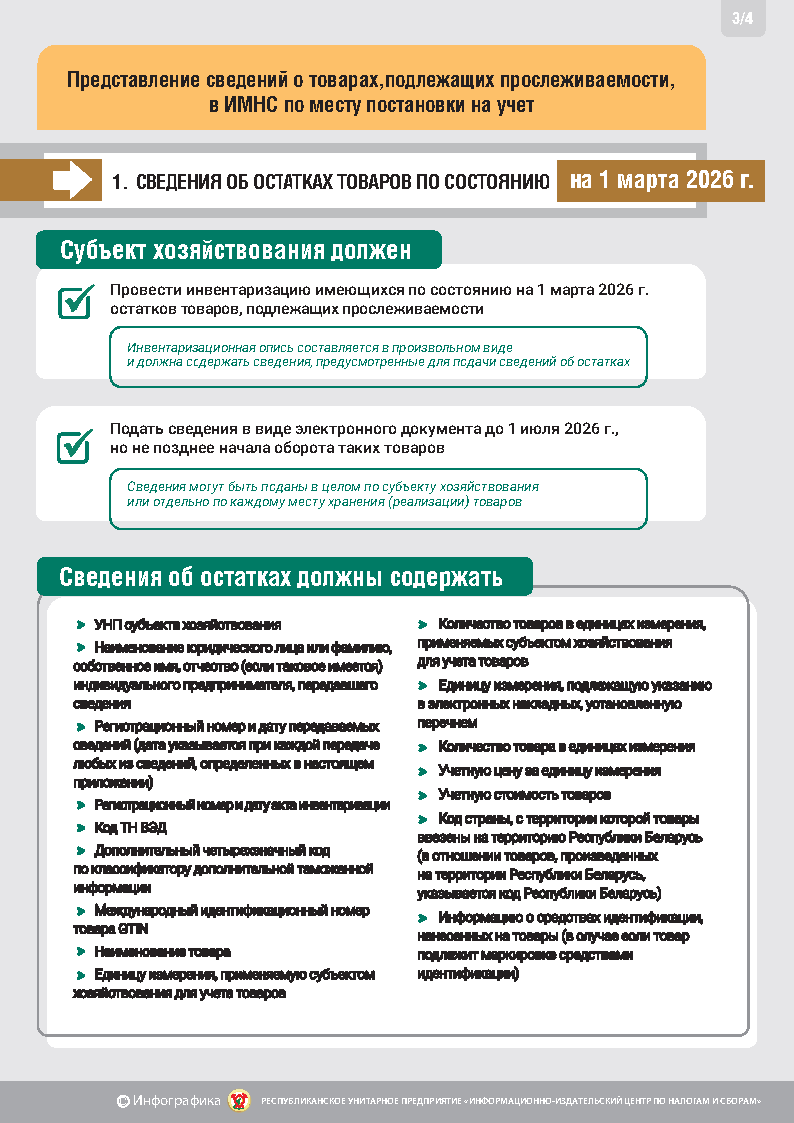 Министерство по налогам и сборам напоминает, что с 1 марта 2026 г. расширяется перечень товаров, подлежащих прослеживаемости. Так, с указанной даты прослеживаемости будут подлежать: