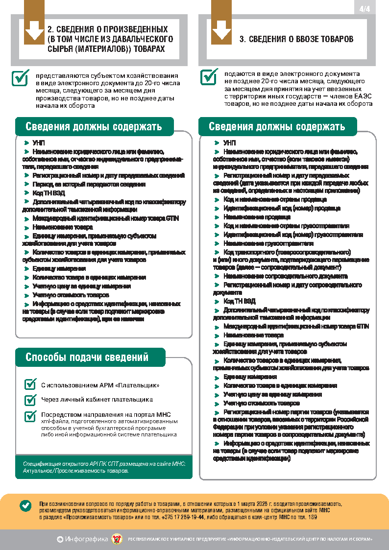 С подробной информацией по прослеживаемости товаров юридические лица и индивидуальные предприниматели могут ознакомиться на официальном сайте Министерства по налогам и сборам в разделе «Прослеживаемость товаров».
