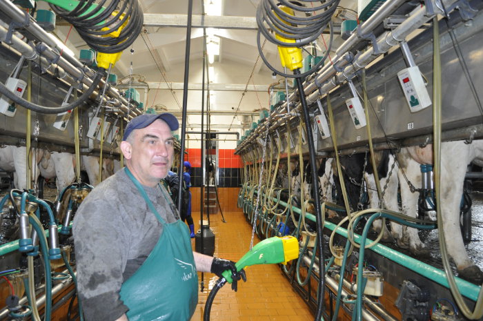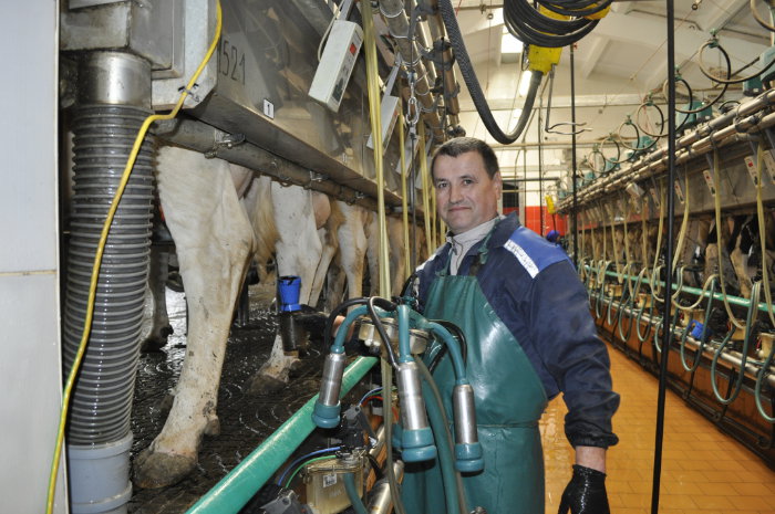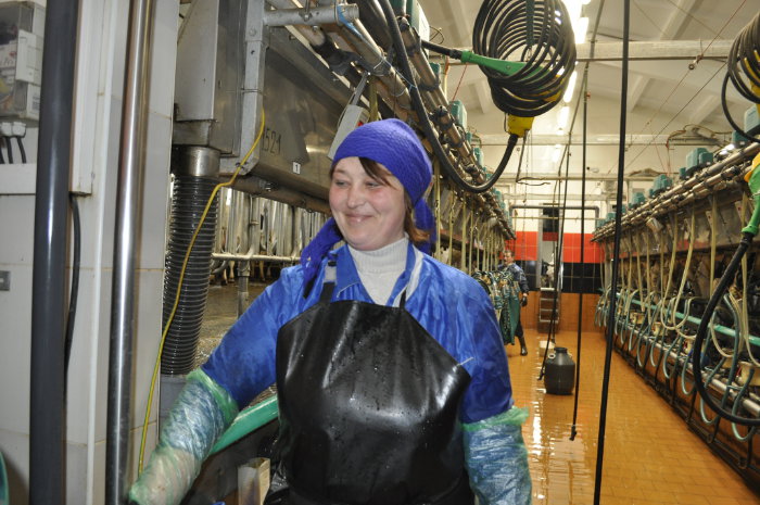 Нам повезло присутствовать во время процесса доения коров, в котором принимали участие три работника – операторы машинного доения Людмила Сергеевна Бруйло и Михаил Михайлович Щурко, слесарь-вакуумщик, работающий со скруббером, Сергей Анатольевич Тарасевич. Надо сказать, что не так часто можно встретить в хозяйствах мужчин, занятых доением коров. Как правило, эта непростая работа перекладывается на хрупкие женские плечи. В то же время Михаил Михайлович не только не стесняется своей профессии, а наоборот считает, что эта работа ничем не отличается от любого другого дела, где требуются усердие, внимательность, добросовестность, аккуратность и, конечно, трудолюбие.